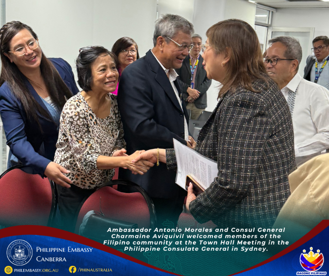 28 November 2025, SYDNEY — Philippine Ambassador to Australia, H.E. Antonio A. Morales and Consul General Charmaine Rowena Aviquivil engaged the Filipino Community in New South Wales in a Town Hall Meeting on 28 November 2025.