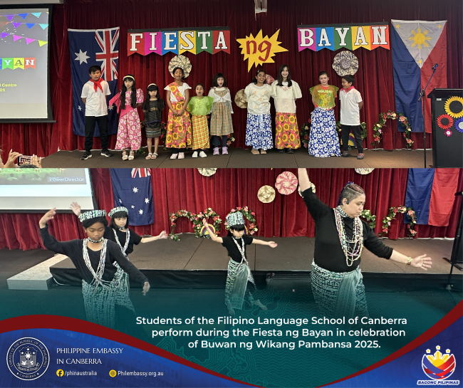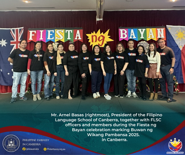 24 August 2025, CANBERRA – The Philippine Embassy in Canberra joined the Filipino Language School of Canberra (FLSC) in celebrating Buwan ng Wikang Pambansa through the Fiesta ng Bayan held on 24 August 2025 at the Theo Notaras Multicultural Centre.