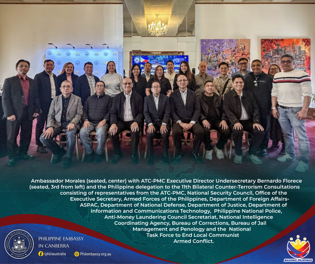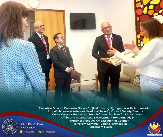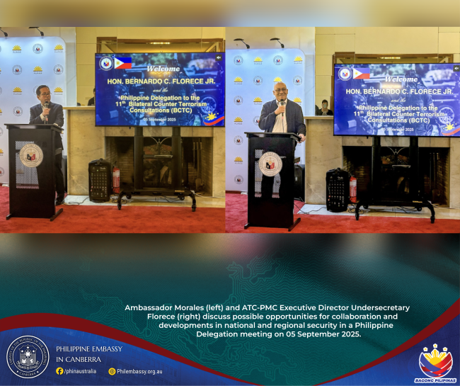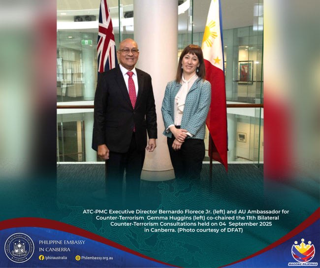 04 September 2025, CANBERRA – Undersecretary Bernardo Florece Jr., Executive Director of the Anti-Terrorism Council - Program Management Center (ATC-PMC), led the Philippine delegation in reaffirming the country’s strong and enduring partnership with Australia in counter-terrorism and countering violent extremism.