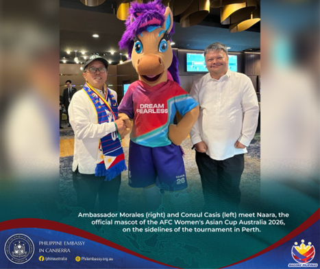 01 MARCH 2026, PERTH and CANBERRA – Philippine Ambassador to Australia Antonio A. Morales joined Filipino-Australian supporters in Perth to cheer on the Philippine Women's National Football Team, the Filipinas, as they compete in the AFC Women's Asian Cup 2026 in Australia.