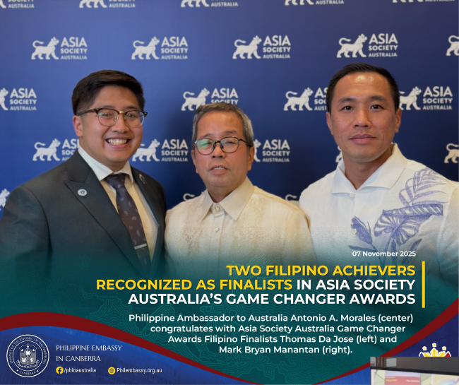 07 NOVEMBER 2025, MELBOURNE - Two Filipino achievers were recognized as finalists in the Asia Society Australia’s Game Changer Awards held on 07 November 2025.