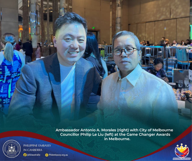 Philippine Ambassador to Australia H.E. Antonio Morales met with the Filipino nominees and commended them for exemplifying Filipino leadership and excellence, as well as for their contributions to uplifting the profile of the Philippines in the region.